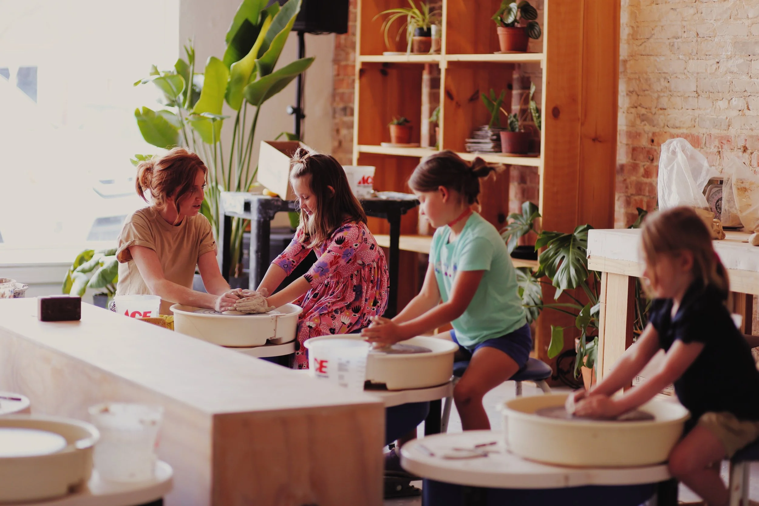 A parent or caregiver must attend and be involved. This is a shared experience! Up to three adults are welcome per child. Grown-ups come free, but the pottery wheel time is just for the kids (with your help, of course!).